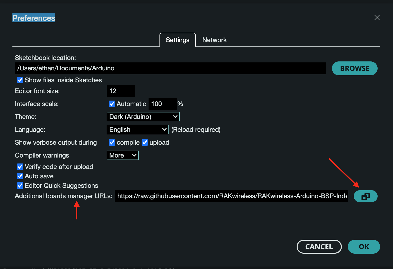 - Copy https://raw.githubusercontent.com/RAKwireless/RAKwireless-Arduino-BSP-Index/main/package_rakwireless_index.json