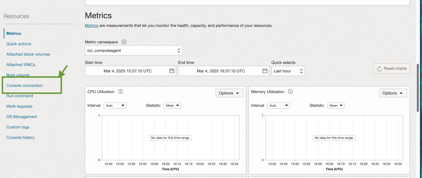 Find the instances on the cloud console and choose the console connection on the left bottom.